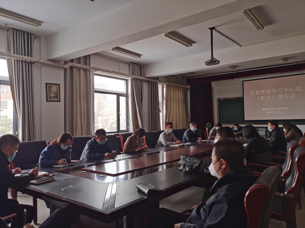 3月26日上午,我院在206会议室召开党委理论学习中心组(扩大)学习会,学院党委书记王振友主持会议,领导班子成员、党委委员、党支部书记、各科室、各系正、副主任参加学习。