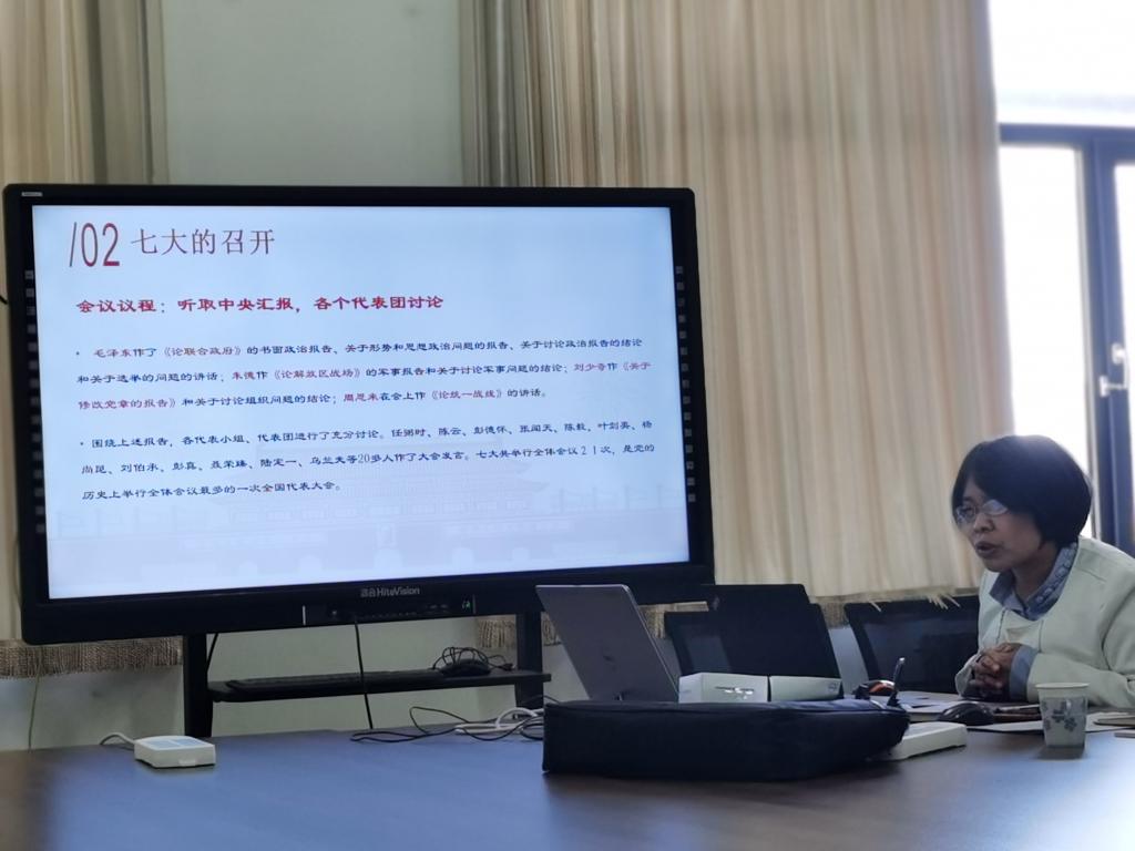 学习期间,柴俊霖老师通过电影片段和演示文稿展示了中国共产党第七次全国代表大会的历史发展。这次大会作为“团结的大会,胜利的大会”而载入史册。它为党领导人民去争取抗日战争的胜利和新民主主义革命在全国的胜利,奠定了政治上、思想上、组织上的基础。