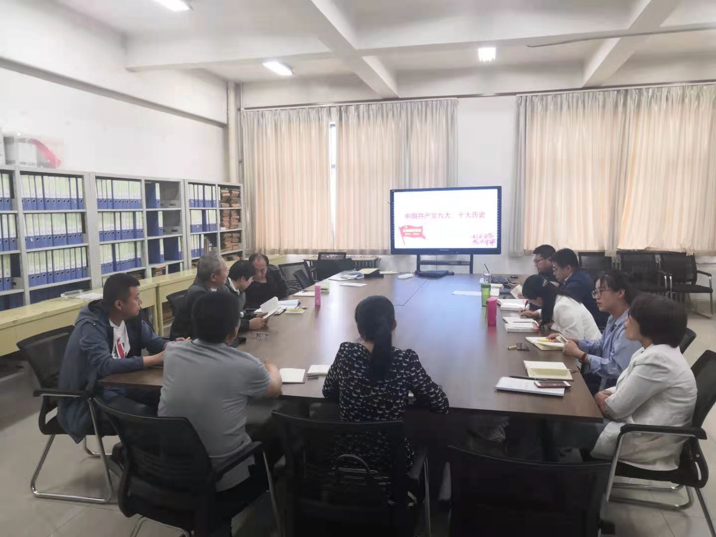 学习期间,系主任宋力通过播放电影片段和PPT文稿展示相结合的手段对中国共产党第八次全国代表大会的历史发展进行了讲解。党支部书记郝慧荣讲解了第九次和第十次全国代表大会的发展历史。