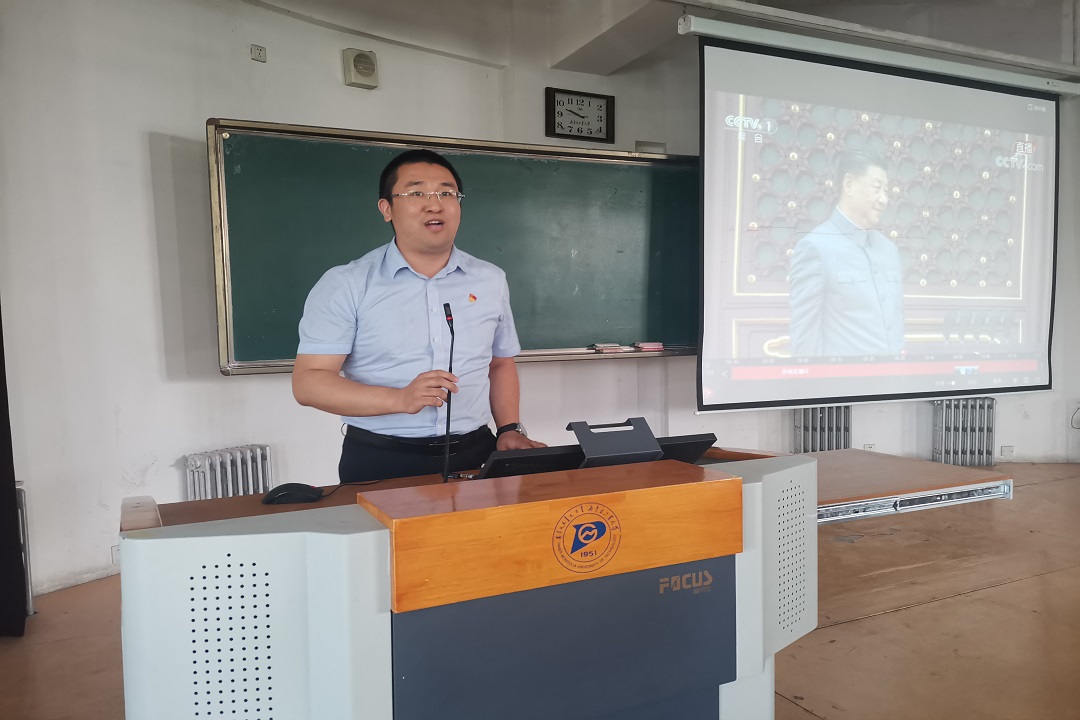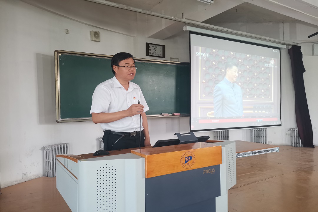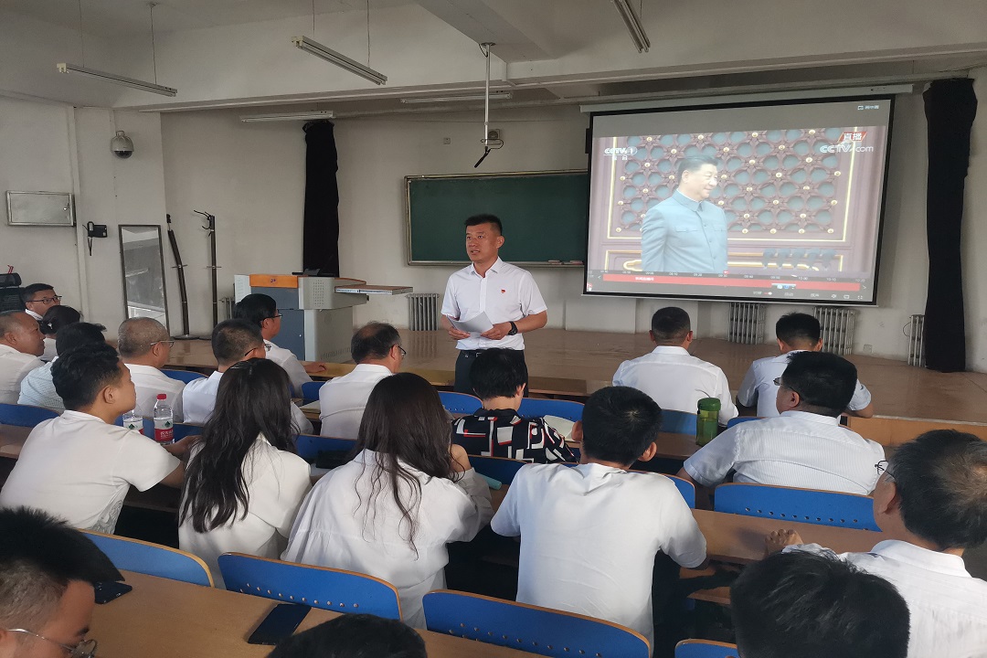 参会人员统一着装,党员佩戴党员徽章,跟随主会场一起起立奏唱国歌。习近平总书记的讲话激荡人心,师生们的情绪高涨,掌声一次次在会场响起,在习近平总书记庄严宣告“我们实现了第一个百年奋斗目标,在中华大地上全面建成了小康社会,历史性地解决了绝对贫困问题,正在意气风发向着全面建成社会主义现代化强国的第二个百年奋斗目标迈进”时;“中国人民也绝不允许任何外来势力欺负、压迫、奴役我们”;“任何人都不要低估中国人民捍卫国家主权和领土完整的坚强决心等讲话”时,与会师生数次热泪盈眶,掌声雷动。