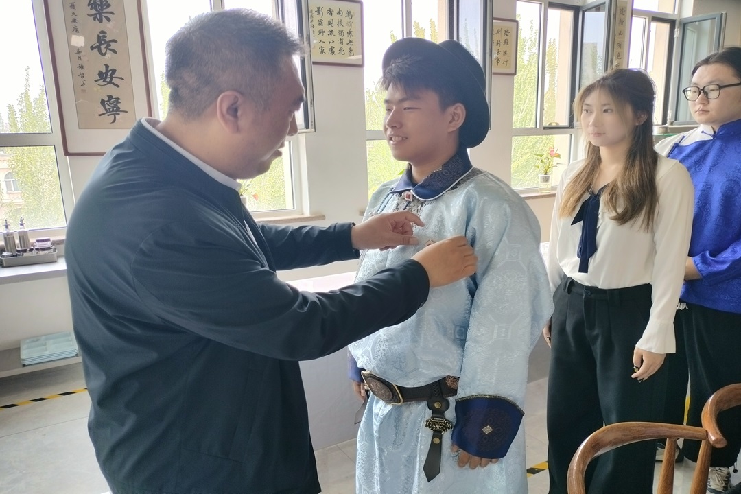 大家和食堂工作人员一起包粽子、做香包、佩戴五彩绳,陈辉为学生佩戴民族团结进步“石榴籽”胸章。