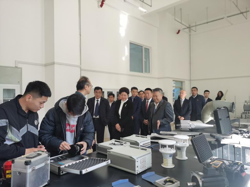 仪式后,在学院院领导班子的陪同下,黄雅丽、王金豹、那仁满都拉、李占峰、郭喜等一行30人共同参观了我院风能太阳能利用技术国家重点实验室,孟克其劳院长全程讲解。