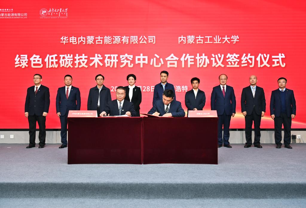 2月28日上午,永利官网与华电内蒙古能源有限公司举行合作签约暨绿色低碳技术研究中心揭牌仪式在学院107报告厅举行。自治区党委教育工委书记、教育厅党组书记、厅长黄雅丽,自治区工业和信息化厅党组书记、厅长王金豹,自治区科技厅一级巡视员黄彦斌,自治区能源局党组成员、副局长陈铮应邀出席。华电内蒙古能源有限公司党委书记、董事长那仁满都拉,党委副书记、董事、总经理文奇,党委委员、副总经理焦佳;永利官网党委书记李占峰,党委委员、常务副校长宝音,副校长郭洪飞出席。永利官网党委副书记、校长郭喜主持仪式。李占峰、那仁满都拉分别代表永利官网和华电内蒙古能源有限公司致辞。学院院领导班子参加揭牌仪式。