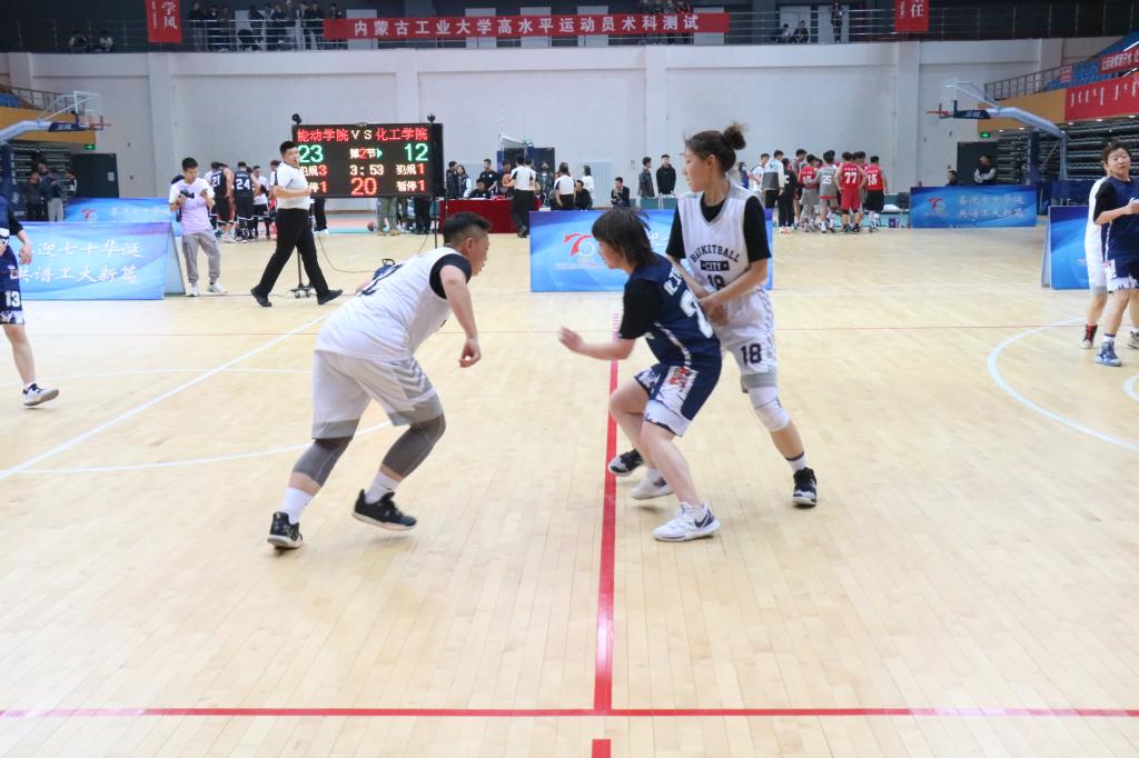 上午十一时左右,女篮运动员们开始热身,她们个个蓄势待发,热情高涨。庄严的升国旗仪式过后,随着裁判一声哨响,由能动学院对战化工学院的精彩篮球赛正式拉开帷幕。