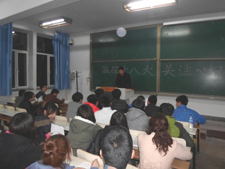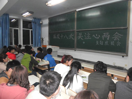 3月25日晚,能动学院在第一教学楼101教室举办“温故十八大,关注心两会”主题座谈会,学生理论学习研究会全体成员参加活动。座谈会上学研会会长首先带领大家温习了十八大的会议精神,同时针对两会中提出的各类问题与会员们进行了交流,同学们也充分表达了自己对“中国梦”的理解,对于中央在改善人民生活质量方面采取的措施谈了他们自己的感受。通过本次座谈会,使大家更加关注祖国的发展和人民的生活,增强了同学们作为中国人的自豪感和建设祖国的责任感。(供稿:能动学院马元波图片:田济东)