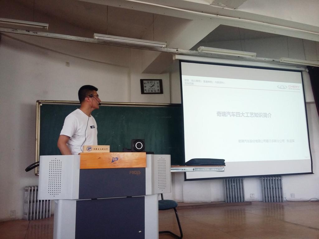 ,我院邀请奇瑞汽车股份有限公司鄂尔多斯分公司总装工艺科张连军工程师为车辆工程、交通运输专业大二、大三约200名学生,举行了《奇瑞汽车先进工艺制造》专题讲座。张连军工程师将四大工艺形象的比作盖房子,极大地吸引了学生们对所学专业知识的兴趣。
