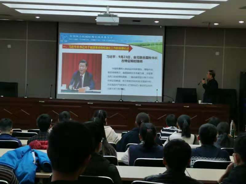 2020年11月5日下午,中国农业机械化科学研究院呼和浩特分院王建平研究员在我校教研楼第三报告厅为我院师生做了题为《实施风电标准化战略的思考》的学术报告。本次报告会由304永利集团热能工程系系主任马剑龙教授主持,学院相关专业师生90余人参加了报告会。