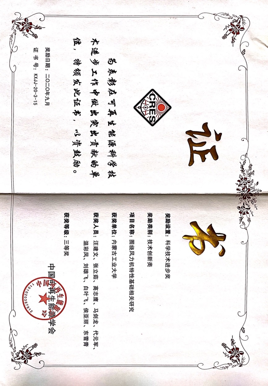 ※动力机械及工程学科团队获2019年度自治区自然科学一等奖和中国可再生能源学会科学技术进步三等奖。