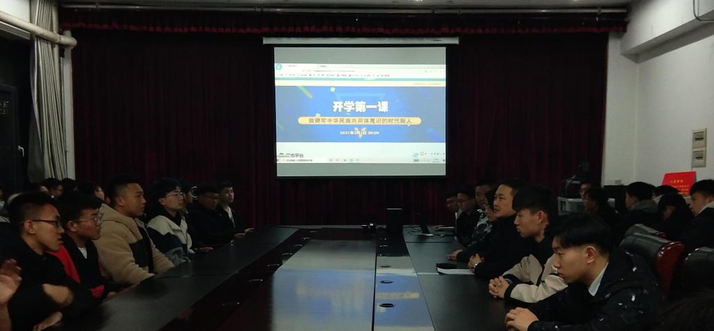 为营造积极和谐的开学氛围,大力开展爱国主义教育、党史教育、民族团结进步教育和“战疫”专题教育,2021年3月1日晚,学院组织观看主题为“做铸牢中华民族共同体意识的时代新人”的“开学第一课”,本次活动以“线上+线下”的形式开展。