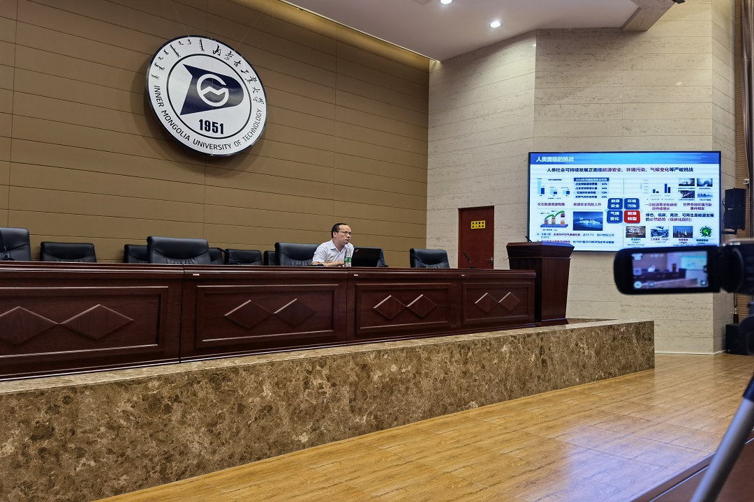 讲座中,帅永教授详细介绍了碳中和战略与实现方式,太阳能热驱CO2还原再生技术、CO2电解还原技术,从能源结构、新能源、减污降碳、生态碳汇等方面详细阐述了碳中和的实现方式。在场老师、同学认真聆听讲座,并在会后与帅永教授就“碳达峰、碳中和”等问题进行了交流。