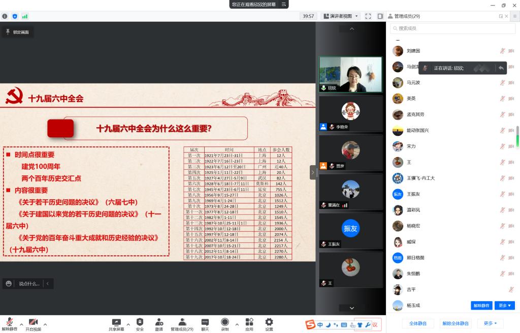 院党委书记王振友主持会议。党委副书记、副院长李欣欣以PPT的形式解读了党的十九届六中全会精神、《中共中央关于党的百年奋斗重大成就和历史经验的决议》和习近平总书记参加十三届全国人大五次会议内蒙古代表团审议时重要讲话精神,分享了个人学习心得体会。