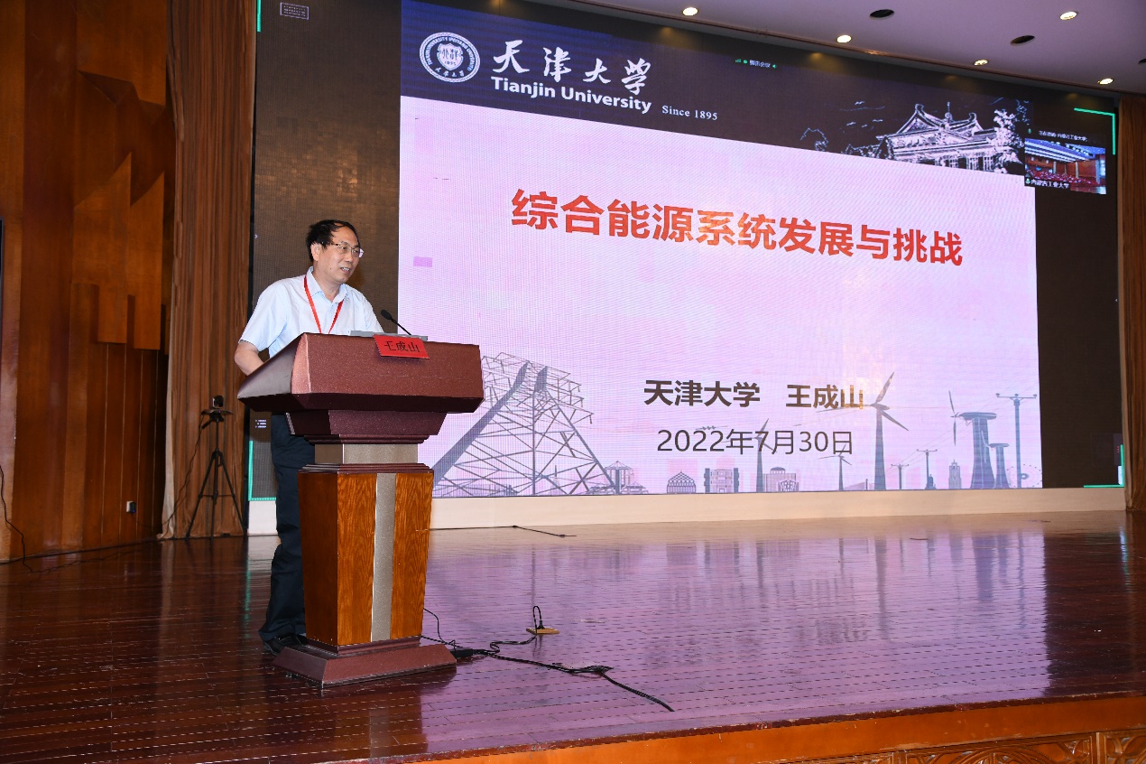 中国工程院院士、天津大学王成山教授做了题为“综合能源系统发展与挑战”的主旨报告。梳理了综合能源系统的发展路径、相关考虑因素和需要解决的主要问题,详细介绍了天津大学在综合能源系统方面开展的主要工作和典型的应用案例。