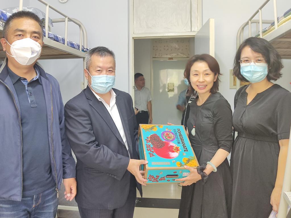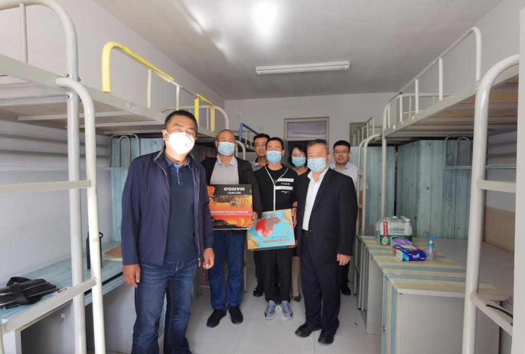 在第38个教师节来临之际,9月9日,304永利集团党委书记陈辉,院长孟克其劳,院党委副书记、副院长臧琛,副院长马剑龙,副院长刘建国,工会主席云峰,团学办公室主任马元波看望慰问防疫一线教职工,向他们致以节日的祝福和诚挚问候,并送去节日慰问品,表达对防疫一线教职工浓浓的关爱之情和满满的“双节”祝福。