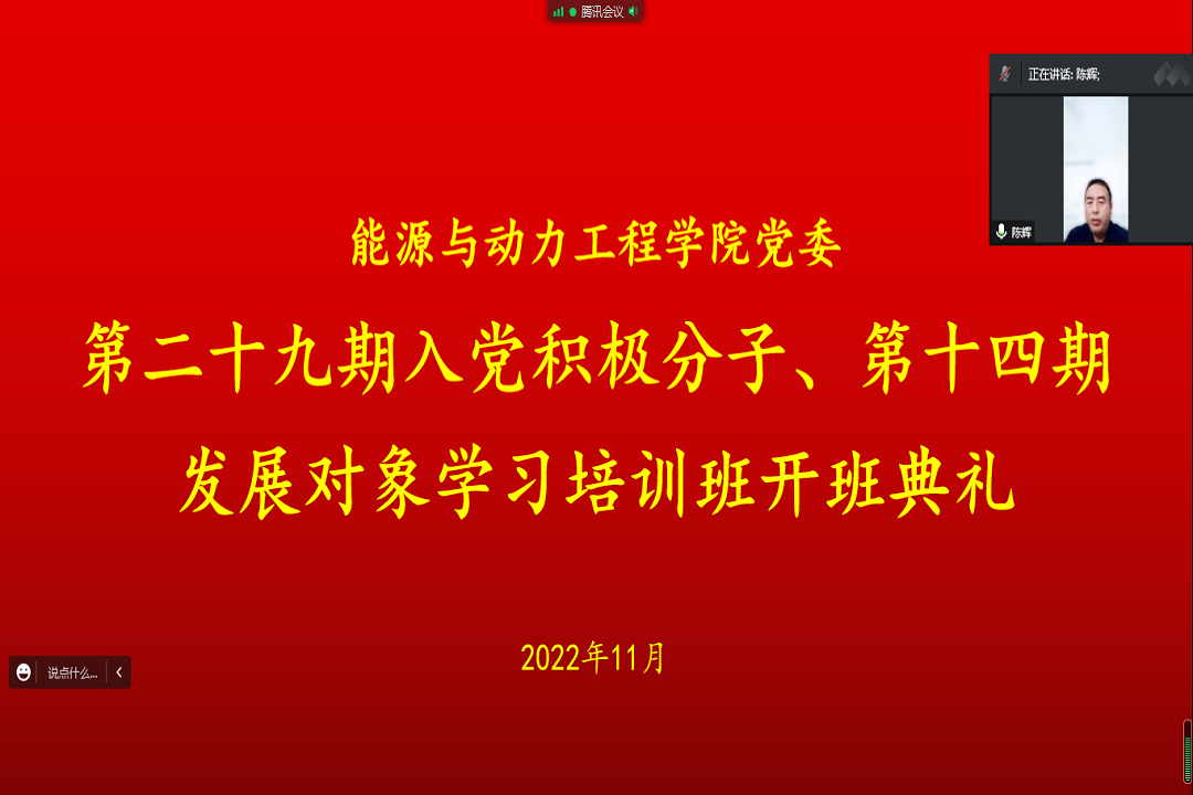 在雄壮的国歌声中,开班典礼拉开序幕。陈辉作动员讲话,他肯定了疫情期间同学们主动担当,向阳而行的作为,对参会学员提出三点要求,勉励大家要扎实学好党的理论知识,坚定跟党走的理想信念,严格要求自己,做到学有所得、心有所获、学思践悟,争取早日加入中国共产党。