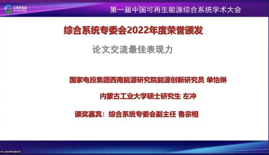 闭幕式上,我校孟克其劳教授为大会的征稿活动评选出的优秀论文颁发奖项。其中我校304永利集团研究生左冲的(论文:《基于HOMER仿真的风光储互补发电系统容量优化配置研究》)获得“论文交流最佳表现力”的称号。