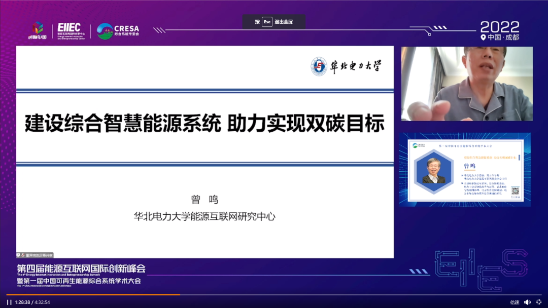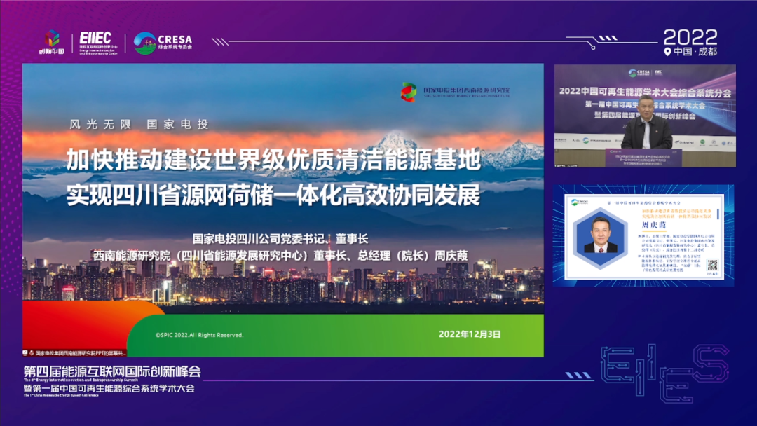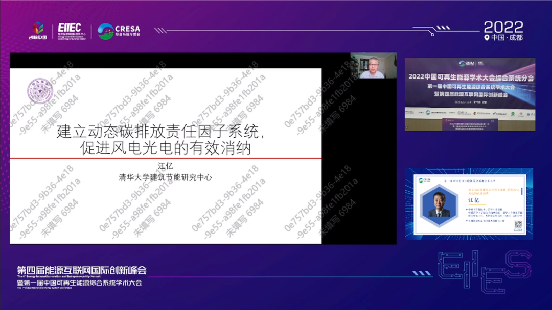 接着,在中国科学院电工研究所特聘研究员、中国可再生能源学会综合系统专委会主任许洪华的主持下,大会进入主题论坛环节。中国工程院院士、清华大学教授江亿做了“建立动态碳排放责任因子系统,促进风电、光电的有效消纳”主题演讲;能源互联网研究中心主任、中国能源研究会能源互联网专委会主任、中国能源研究会数字经济专委会副主任、华北电力大学教授曾鸣带来“建立综合智慧能源系统、助力实现双碳目标”的主题报告;中国可再生能源学会综合系统专委会副主任、清华大学电机系长聘副教授、清华四川能源互联网研究院常务副院长鲁宗相继续与参会嘉宾、观众探讨“双碳背景下的可再生能源发展与综合系统利用”话题;国家电投集团四川电力有限公司党委书记、董事长,国家电投集团西南能源研究院董事长兼总经理、政协四川省第十二届委员周庆葭周庆葭做了“加快推动建设世界级清洁能源基地,实现四川省源网荷储一体化高效的协同发展”的报告分享。