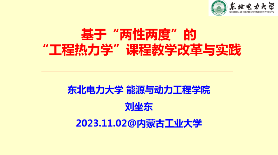 王亚辉以《能源与动力工程国家级一流本科专业建设与实践》为题,介绍永利官网能源与动力工程专业发展历程、专业定位、人才培养特色、师资队伍和教学条件等情况。东北电力大学刘坐东副教授从课程建设角度出发,以《基于“两性两度”的“工程热力学”课程教学改革与实践》为题,对“工程热力学”课程教学改革与实践进行汇报。上海电力大学闫廷副教授以《新工科背景下能动类人才培养的思考与实践》为题进行交流分享。