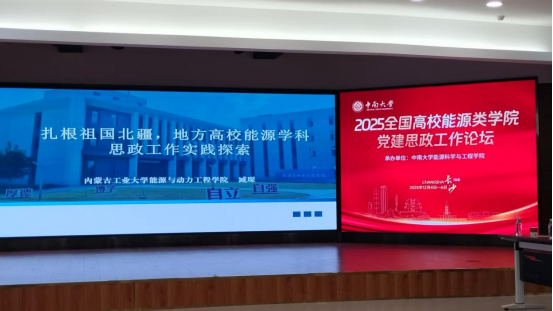 2025 年 12 月 4 日至 6 日,由中南大学能源科学与工程学院承办的“全国高校能源类学院党建思政工作论坛”于湖南长沙顺利举行。此次论坛汇聚了清华大学等全国四十余所高校能源类学院党建思政负责人以及相关专家学者,通过经验分享、交流互动以及问题研讨等形式,深化新时代立德树人工程实践,共同开创党建引领能源学科发展、思政赋能人才培养的崭新局面。