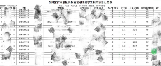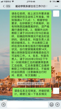 从1月26日起,学院迅速建立师生网格式信息报送制度,形成学院—科室—师生纵向到底、横向到边的师生信息报送体系,实时了解师生行程和健康状况,实行师生健康“日报告、零报告”制度,确保防控信息及时全面准确。辅导员一对一致电18名湖北籍学生,了解他们的健康状况和生活状态,送去学院的关怀,并告知他们相关的防疫知识,目前这18名学生健康状况良好。