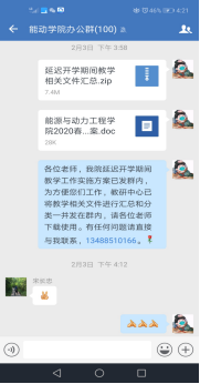 停课不停教,停课不停学。学院提前梳理可能受影响的教学工作,起草学院延迟开学期间工作方案,细化各类教学任务的具体落实方案,明确实施主体和时间节点,统一规范化组建课程微信群。共组建课程微信群38个,每群安排系主任2名、教研中心人员1名,涉及授课教师34人,涉及学生2743人.次,目前授课教师已逐步开展教学工作。
