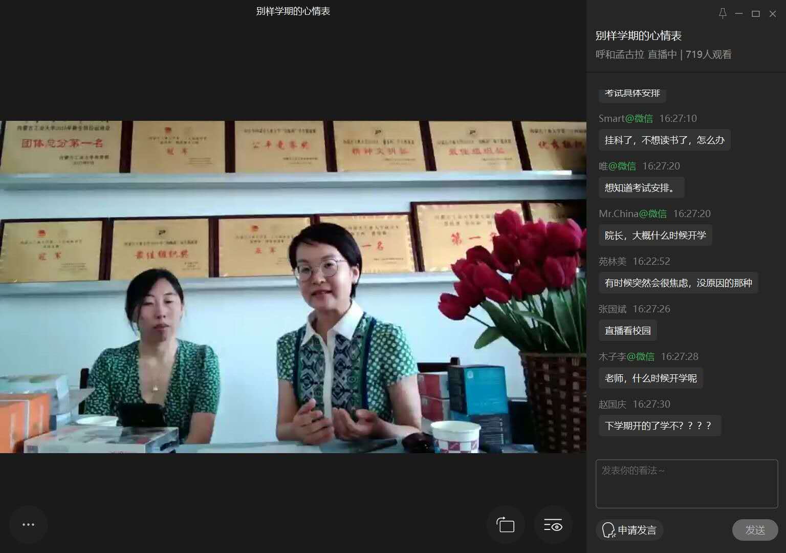本次活动共计700余人在线观看。讲座内容针对性强、形式活泼,同学们热情高涨,评论区话题互动累计2万余条。本次活动的成功举办,为宅家学习的学生们提供了良好的心理指导,也为进一步开展线上思想政治教育工作提供新的尝试与探索。