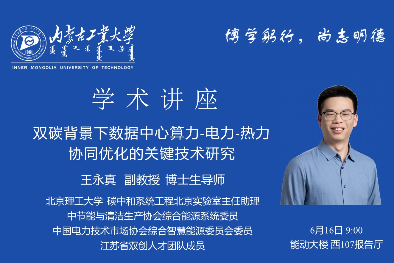讲座题目: 双碳背景下数据中心算力-电力-热力协同优化的关键技术研究